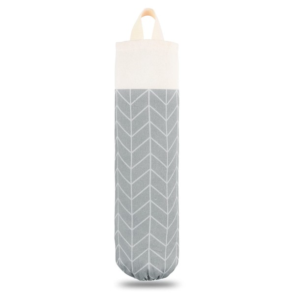 - STURDY MATERIAL&STITCHING STRONG - Sturdy and neutral print grocery bag organizer is easy to clean by machine and made of thick canvas fabric build that will definitely NOT tear up over time and usage. Double stitched plastic bag dispenser is able to withstand some tugging.