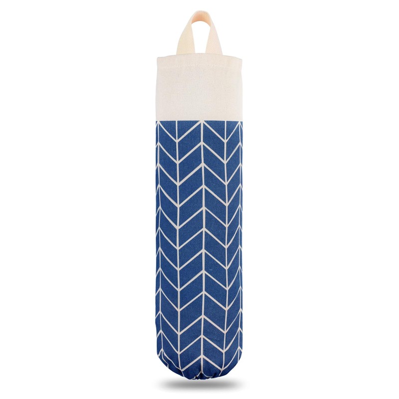 LeCorner Plastic Bag Holder, Canvas Grocery Bag Holder Dispenser, Wall Mount Shopping Trash Bag Storage Organizer for Home Kitchen (Classic Blue)