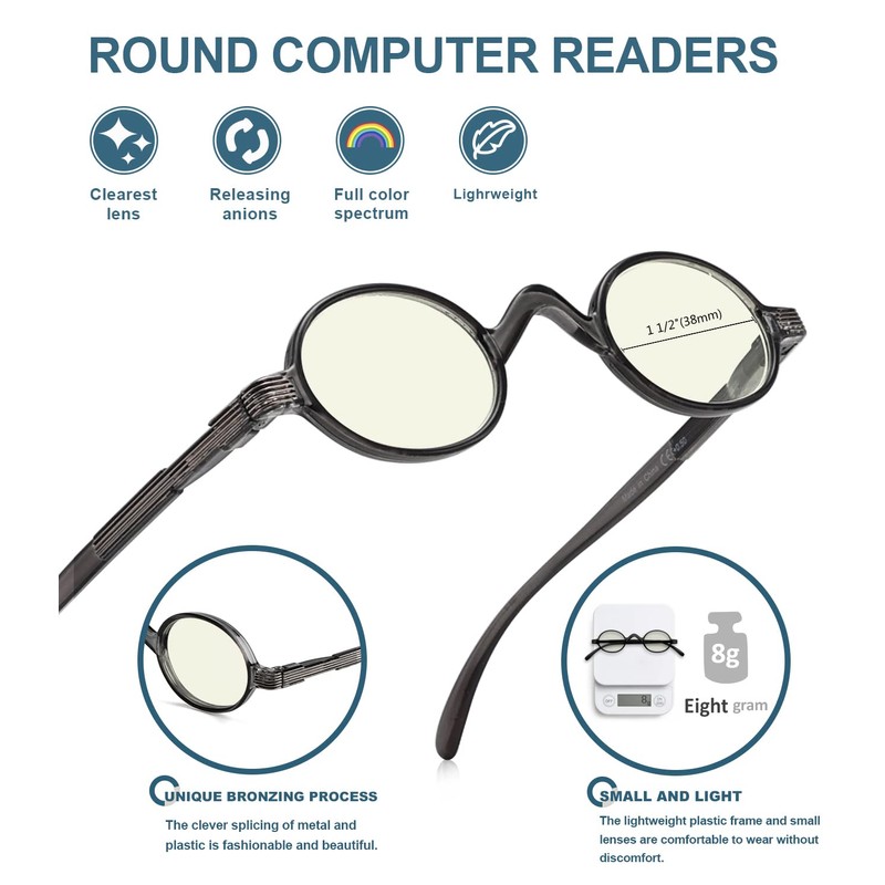 • anteojos de lectura para computadora, antideslumbrantes y antirayos UV.Excelente para aliviar molestias visuales y fatiga asociadas con el uso de un computadora durante largos períodos de tiempo