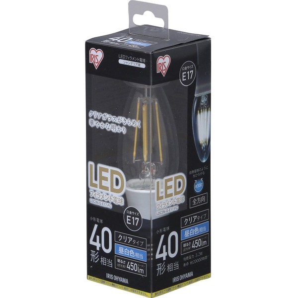アイリスオーヤマ LED電球 フィラメント 口金直径17mm 40W形相当 昼白色 全配光タイプ クリア LDC3N-G-E17-FC