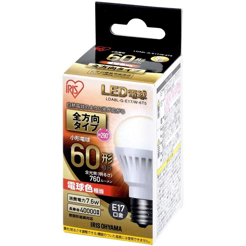 アイリスオーヤマ LED電球 口金直径17mm 60W形相当 電球色 全方向タイプ LDA8L-G-E17/W-6T5