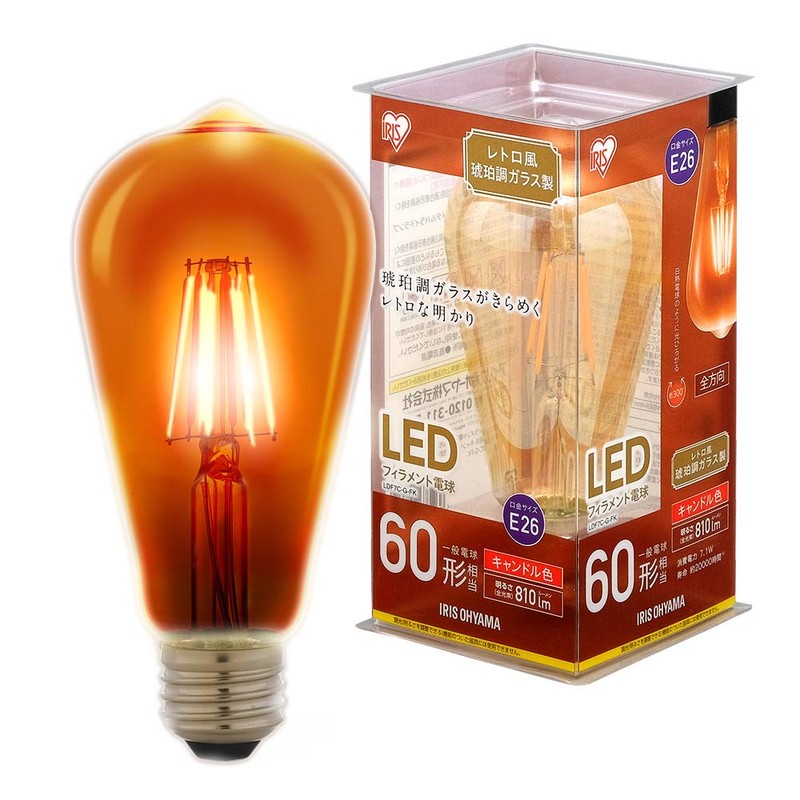 【節電対策】 アイリスオーヤマ LED電球 フィラメント 口金直径26mm 60W形相当 キャンドル色 全配光タイプ ST形 レトロ風琥珀調ガラス製 LDF7C-G-FK