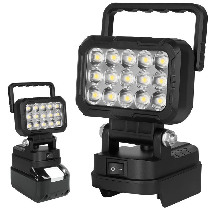 - 【Akkubetriebene Arbeitsleuchte】: Diese 45W Akku Arbeitsleuchte bietet einen breiten Lichtstrahl mit 3400 lm. Der Akku (kompatible mit Makita Lithium-Ionen-Akkus erforderlich) lässt sich problemlos mitführen, auch wenn Sie nicht an eine Stromquelle angeschlossen sind. Der um 140 Grad schwenkbare Kopf sorgt für eine flexible Ausleuchtung Ihrer Arbeitsfläche, und das Licht lässt sich je nach Bedarf in verschiedene Richtungen lenken. Das kompakte Design passt perfekt in Ihren Werkzeugkasten.