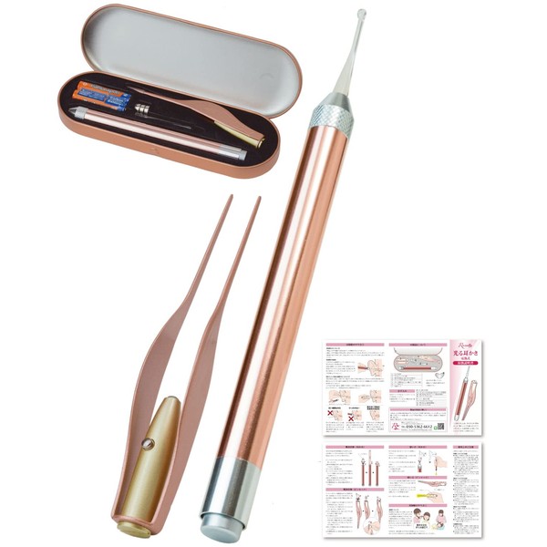 【保育士が監修】 耳かき みみかき 光る耳かき 耳掃除 ピンセット 耳垢 掃除 みみあか 子ども用 子供 子供用 赤ちゃん LED ライト 光る 照明付き (ピンクゴールド)