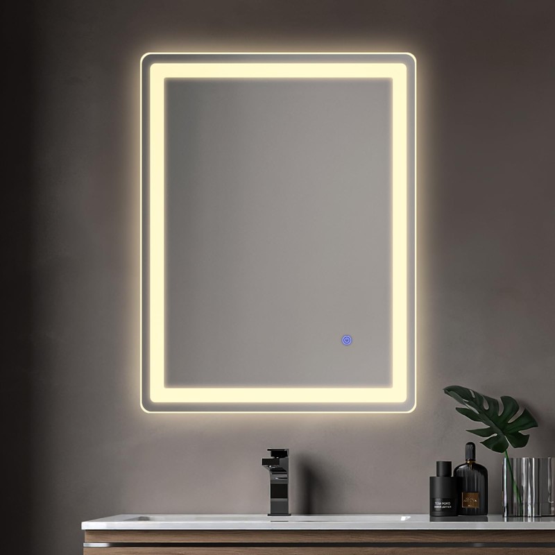 LED Bathroom Mirror Rectangle 24x32 Luxury Warm Light Vanity Premium Dimmable Touch Button Modern Decorative Shatter-Proof Wall Mount