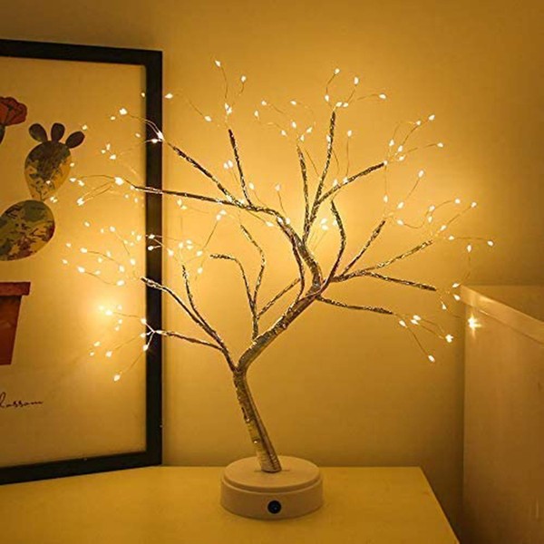 The Bonsai Tree Light has a **Size** of 20" in height with 108 warm white shimmer LED lights. **Flexible Silver Branches** help you adjust the shape of tree easily as you like. This artificial tree is **both Battery Operated and USB connection** , perfect fit for your desk or any corner (batteries not included) The light is perfect not too dim or bright, just make it **SIMPLY THE CREATIVE DECORATION** **IMPORTANT: Please remove the usb cable when using batteries!**