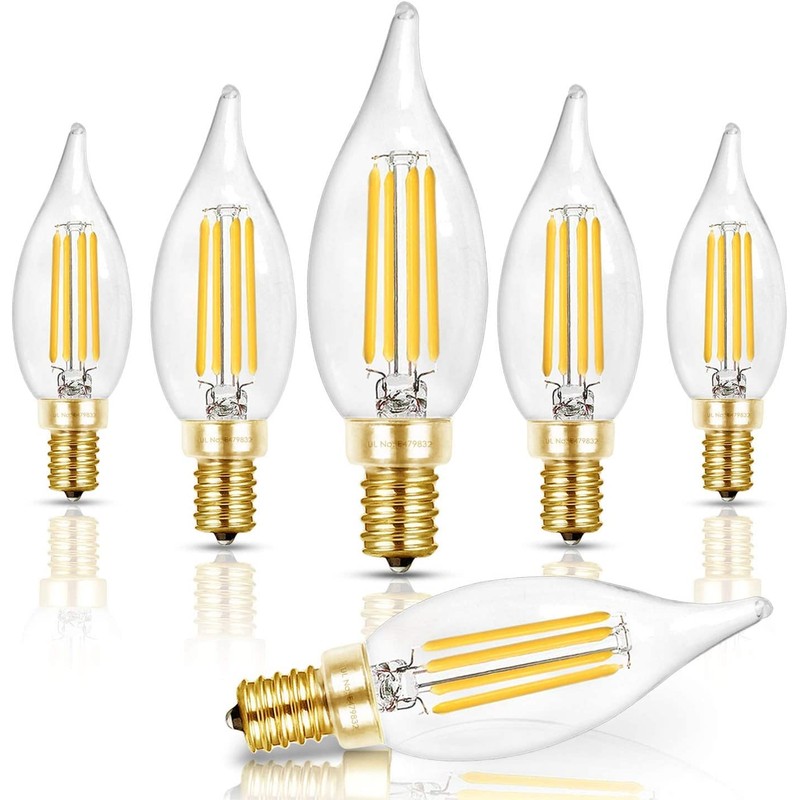 - 【 Package Quantity 6 】- LED BULB E12 Filament, 6W, Dimmable 4000k,5000K (Flame Tip)