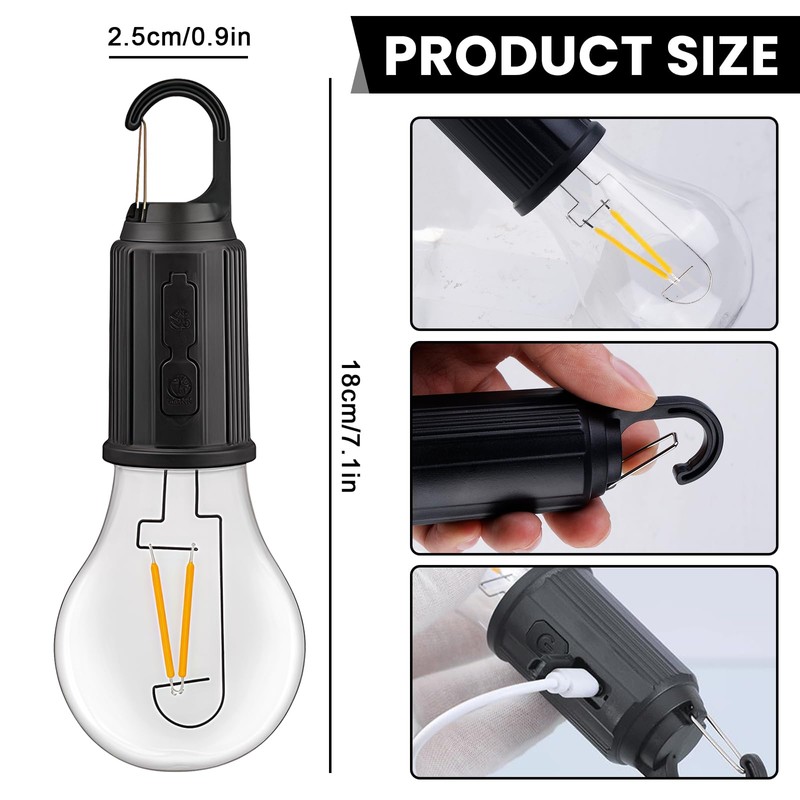 - 【Wiederaufladbare Glühbirne】Die LED-Campingleuchte ist mit einem eingebauten 14500-400-mAh-Akku ausgestattet, der über den TYPE-C-Ladeanschluss in 2 Stunden vollständig aufgeladen werden kann und 2-5 Stunden zuverlässiges LED-Wiederaufladbare Glühbirne Licht liefert. LED Campinglampe Ideal für Campingausrüstung und Notbeleuchtung.