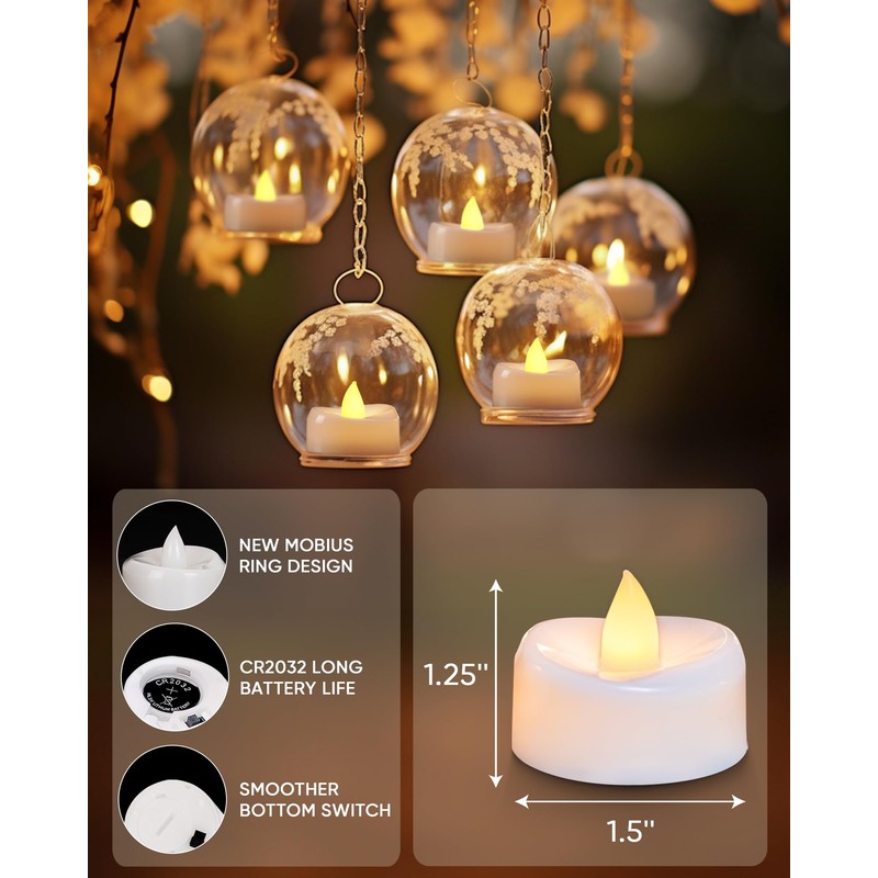 - ⛅[Brand New Mobius Ring Design] Our designers designed the flameless tea light in the shape of a Mobius ring, which is not available on the market. The little cute LED tea light replicates the ivory look of a real candle with a comfortable and smooth touch. And the bottom ON/OFF upgrade, smooth switch, without worrying about being stuck.