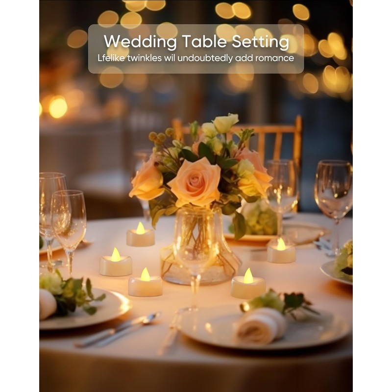 - ⛅[Ideal Decoration & Gifts] Each electric tealight measures 1.5'' D x 1.25'' H. You can tuck these led tea candles into all kinds of places: luminary bags, wishing bottles, votive holders, gift bags under the Christmas tree, etc. A perfect addition to your Christmas, Birthday, Halloween, Wedding, and Anniversary.