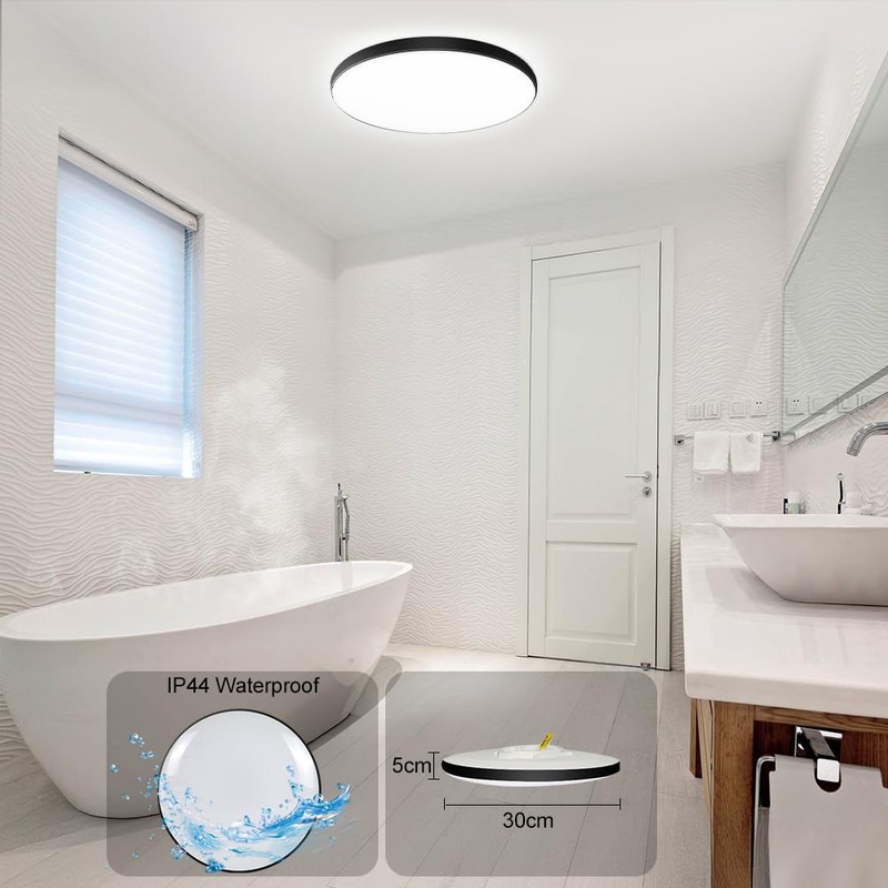 - IP44 Waterproof This IP44 waterproof ceiling light is suitable for bathroom, living room, children's room, bedroom, dining room, kitchen, staircase, toilet, hallway, hallway, warehouse, basement, entryway, balcony, workshop, garage, etc. The installation is also very convenient. In just three steps, you can easily perform the installation yourself without professional help.