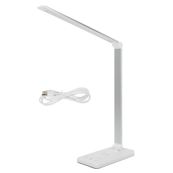 LED Desk Lamp 5 Levels Touch Control USB Eye Protection White Wireless Charging Table Lamp for Students Homes Offices
