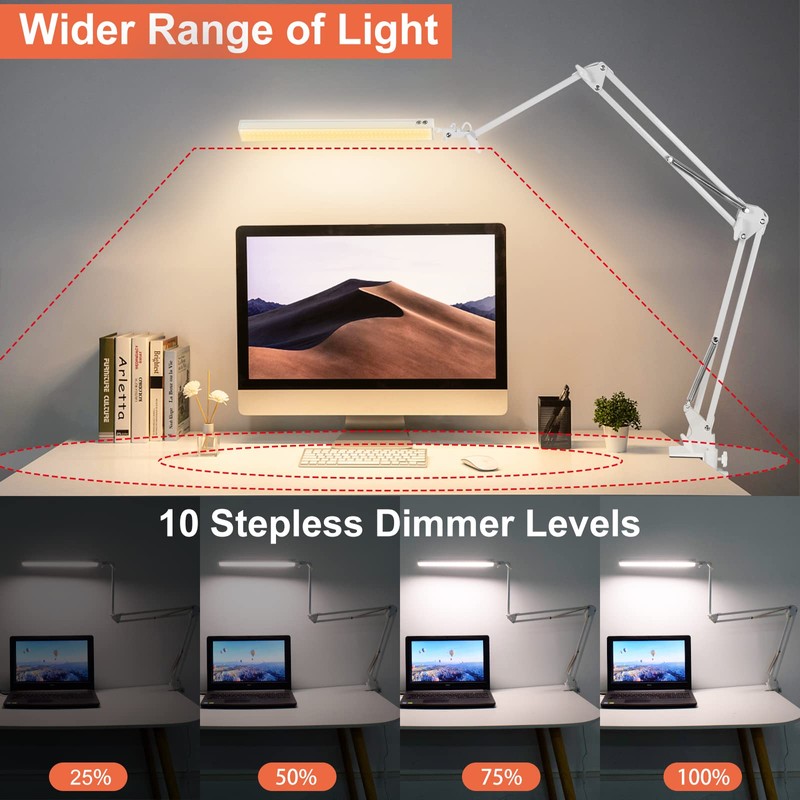 ✔ Dimmable Office Lamp has a 360° rotating base and LED lamp and a 180° adjustable swing arm.