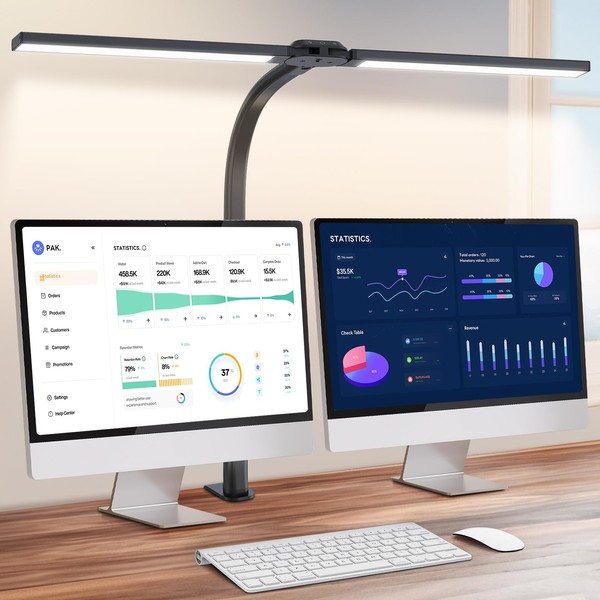 - 【Ultra Bright Wide & Light Induction Adjustment】Featuring a 31.5inch ultra-wide light strip, this desk lamp is suitable for both home and office desks, providing illumination across the entire workbench with a width of 71 inches. The high-efficiency 24W LED delivers evenly distributed light and ample brightness without flickering, making it ideal for use with large displays or workstations. When the ambient light becomes dim, the desk lamp automatically increases its brightness.