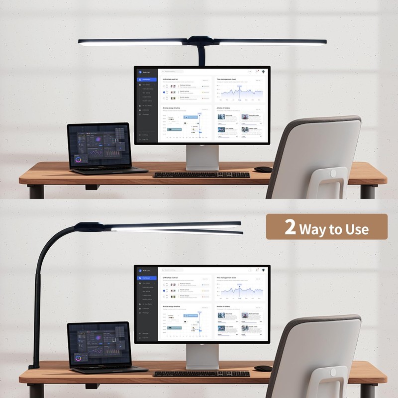 - 【Remote Control & Multifunction】This double head LED desk lamp is equipped with a wireless smart remote control, allowing you to choose the most suitable mode faster and more portable. It also owns two special functions (memory function and timing function ). The memory function can keep the desk lamp in the last used mode and brightness without resetting. The timer function can make the desk lamp turn off automatically after working for 1 hour, preventing us from overworking.