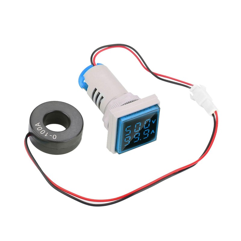 LED Digital Display, Voltage Tester 60-500V 0-100A AC Volt, Volt Amp Meter, Dual Display, Volt Amp Meter, Current Meter, 22mm (Blue)