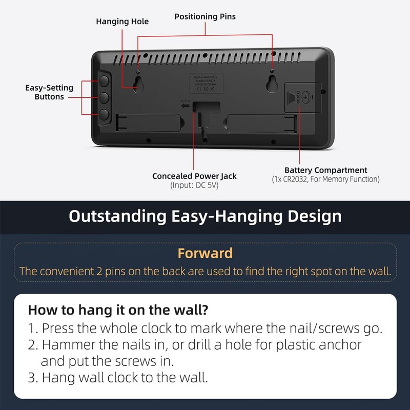 - [Small Wall Clock with Large Digits] - This LED Digital Wall Clock has 2.8-inch digits, notably larger than the 1.8-inch digits on a 16-inch atomic wall clock, making it easier to read at a glance.