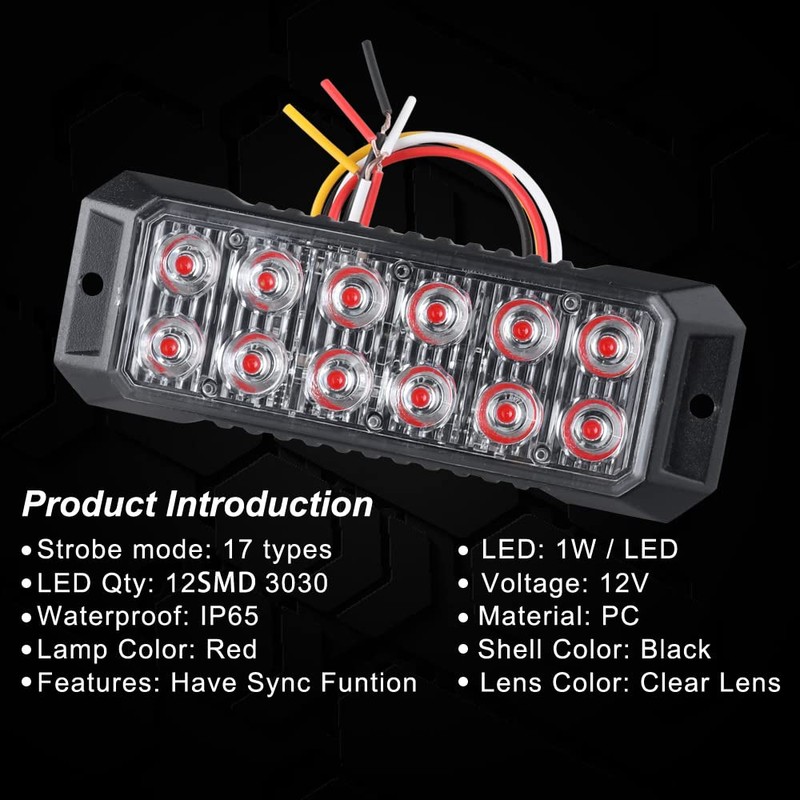 - Each Strobe Light has 12 SMD High-intensity Red LED Chips, Super Bright Light Output, High Visibility, and Improve the Safety of Driving at Night.