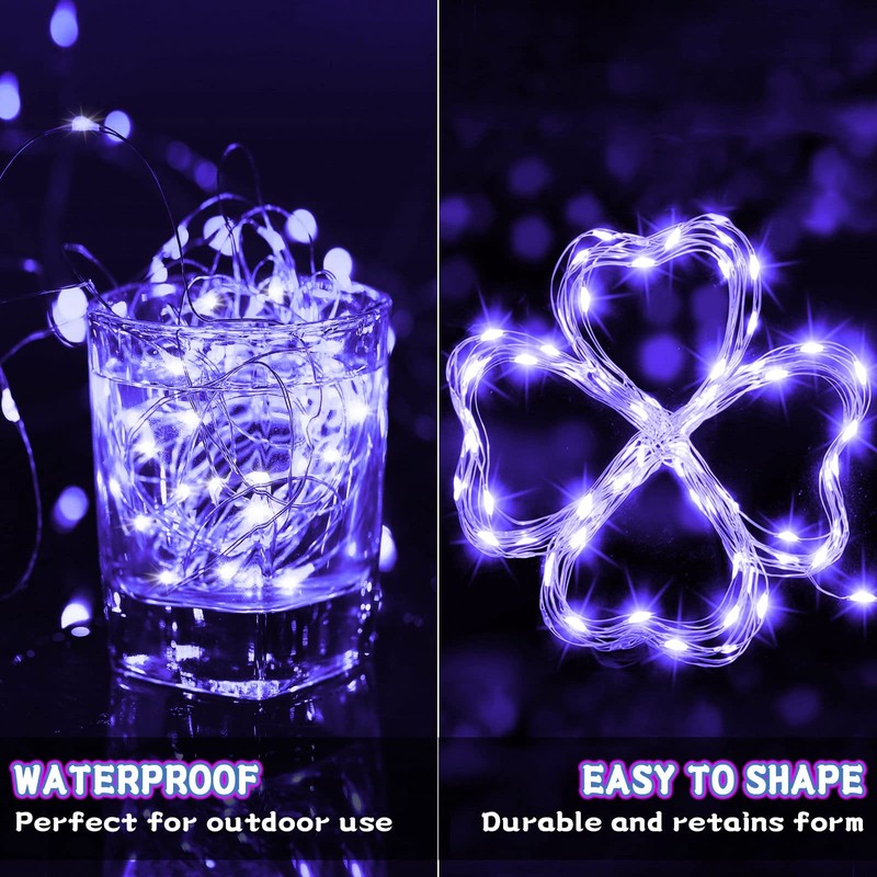 - 【Battery Operated String Lights 】 Each decorative led Black light ends with a clear battery case for you to put 3 AA Batteries (Not Included)into and switch the power button to turn lights on or off.The copper wire used by the led fairy lamp is waterproof and can be used indoors and outdoors (the battery pack is not waterproof).