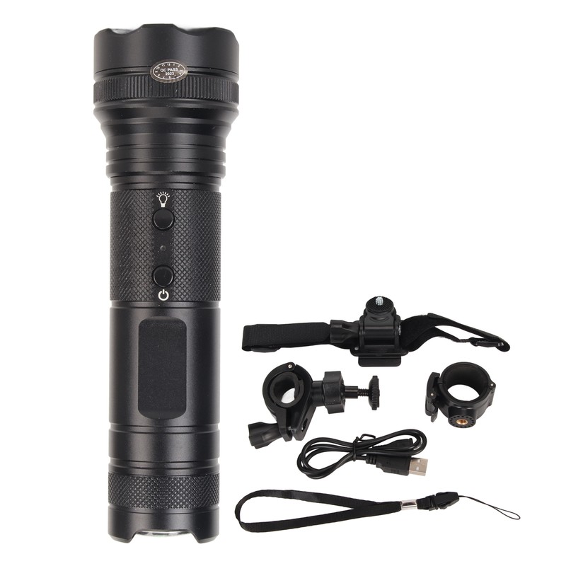1、[Widely Applicable] The flashlight camera comes with mounting accessories that provide a variety of fixing methods, and can be tied to the helmet or fixed to the bike. 2、[Wide Viewing Angle And Multi Lighting Modes] This flashlight action camera offers 1080P HD video, 120 degree wide angle shooting, large shooting area. And there are 5 lighting modes. 3、[Waterproof] This flashlight recorder is made of premium aluminum alloy, sturdy and durable. Waterproof design, more suitable for extreme outdoor adventure. 4、[Rechargeable And Storage Expansion] Micro USB rechargeable flashlight video recorder with built in 2600mah battery. Memory card supports up to 256GB to meet most daily shooting needs. 5、[Multi Application] This LED flashlight camera has a wide range of use for outdoor sports, camping, outdoor cycling, etc, allowing you to shoot anywhere, anytime.