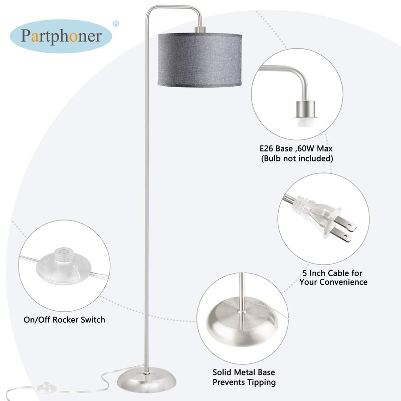 • 2 Different lampshades included: our living room lamp comes with 2 shades (one white, one grey), which allows you simply to change the lampshade based on various decoration styles need or replace the worn one. The Partphoner living room lamp will satisfy your versatile demand. (The soft warm white light to protect eyes and offer the best natural light for reading & working, and make you feel warm, cozy, and romantic.