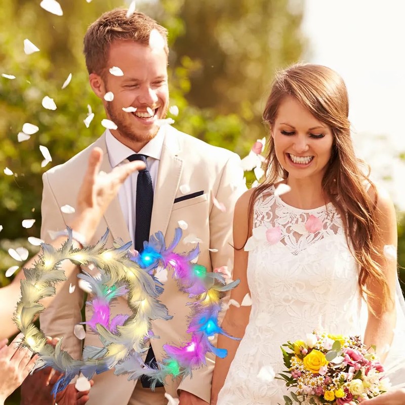 - Lighted LED Flower Headbands: Exquisite processing feather-front straps can be noticed at the party and stay nice from day to night. The LED lights radiate colorful / yellow light when they carry them on their head, looks great in the dark and are a hit at the flashing party.