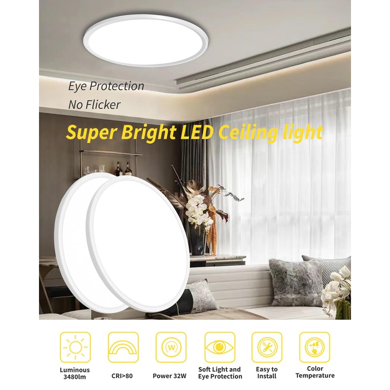 - 【Super Bright & Energy Efficient】Our flush mount ceiling light utilizes integrated LED technology, with a power of only 32W, providing bright and efficient lighting with 3480 lumens.(Equivalent to multiple traditional lamps with a total power of 330w) It saves up to 90% energy compared to traditional bulbs