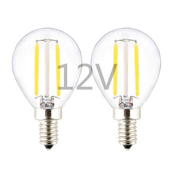 LED G14(G45) Globe Bulb, DC 12V / 24V Input, E12 Small Base, Dimmable with DC Dimmer, 2700K Warm White Light, 2W 200Lm, 25W Incandescent Replacement, for 12Volt Low Voltage Power, 2-Pack