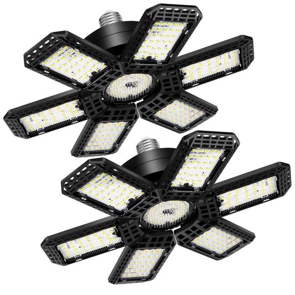 XILLUMI CORE 2 Pack Garage Light, 200W 20000LM 6500K LED Shop Lights, LED Garage Ceiling Lights with 6+1 Adjustable Panels for Basement, Barn, Warehouse, Attic Lighting Support E26/E27 Socket