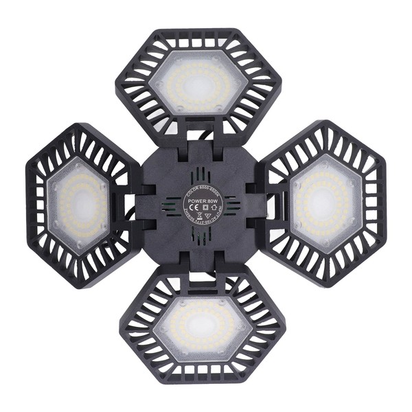 1、4 Foldable Leaf: The angle of the light can be adjusted freely by 90° according to your work needs, which is very convenient. 2、Sturdy and Durable: Manufactured by die casting aluminum, the light wing adjustment is fixed with built in aluminum shaft, which is sturdy and durable. 3、Efficient Heat Dissipation: Using sophisticated airflow design, can efficient and fast heat dissipation, enhanced the service life greatly. 4、High Color Rendering: Adopt high color rendering light source, which restore the true color of the items, bright, save electricity greatly. 5、Wide Application: The LED garage light is widely used in various places such as shopping malls, factories and warehouses, etc.