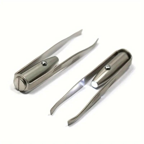 LED Illuminated Eyebrow Tweezer, Stainless Steel, Black and Silver