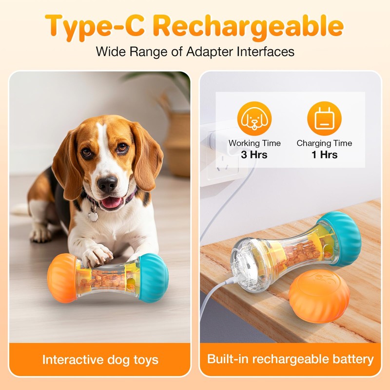 - Easy to Maintain and Clean: Dog brain stimulation toys are disassembled design, just one twist of the dog interactive toys , you can access the food compartment and remove the parts. It last up to 3 hours on a single charge.Be careful to prevent water from entering the charging port when cleaning.