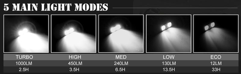 Mini LED flashlight has 5 Main brightness level(Turbo-High-Mediem-Low-Economic) and 5 side light modes(White-Yellow-Green-Blue-UV-Red-Red Flash-Red Blue Flash). Can be used as EDC flashlight, UV as a detecting tool for money and fluorescer, Red Blue Flash, Red Flash multi-function warning light, and Anti-Wolf Alarm can work as signal light during outdoor activities.
