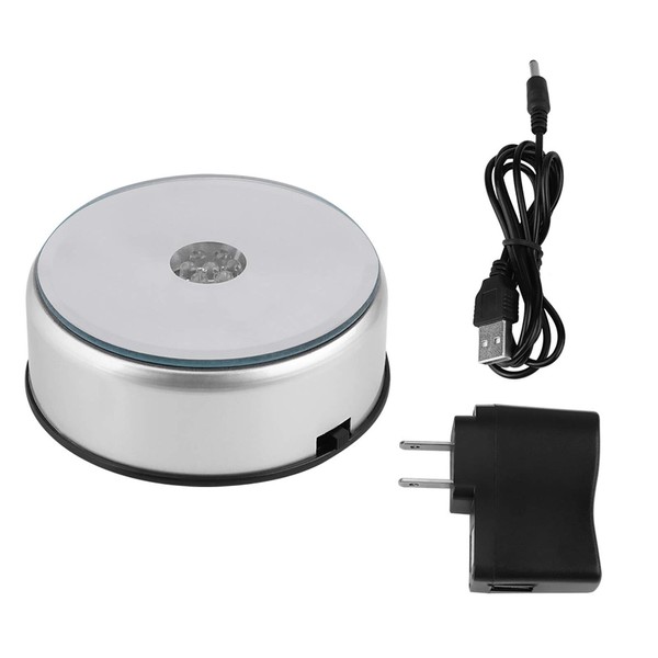 LED Light Base, Colorful Light Rotating Crystal Display Base Stand Light Show Holder with AC US Adapter Silver Battery Operated.