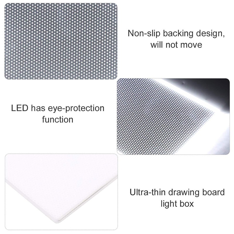 - Non Slip Backing: LED writing boards and LED drawing tablets are four non slip mats on the back will ensure that the light pad will not slip during using. Non slip lining allows you to paint better, bring you a better experience, and complete the work at one time