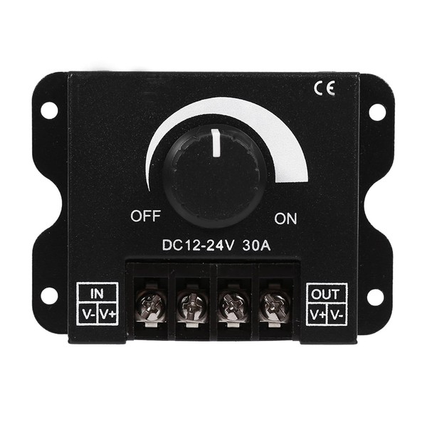 LED Light Strip Dimmer, DC 12V-24V 30A PWM Dimming Controller LED Switch Dimmer Controller Manual Adjust Brightness Light Switch Dimmer Controller for Strip Light Single Color