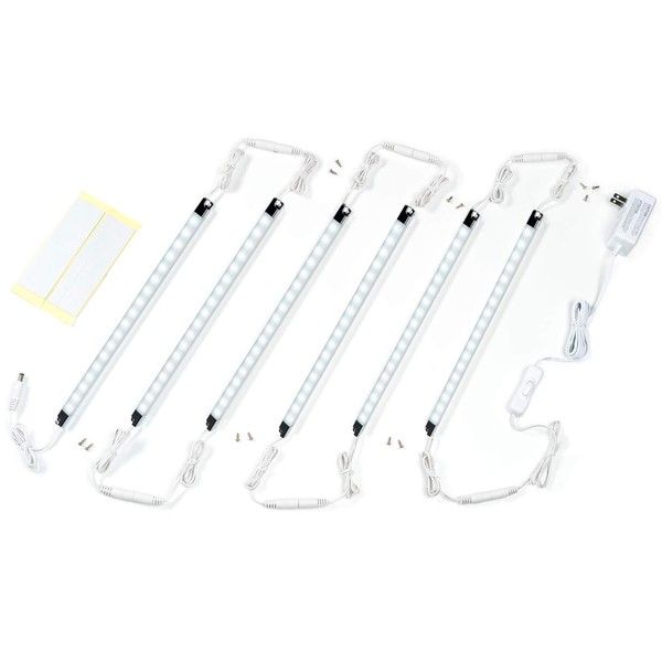 Led Light Strips Kit, (6) 12’’ Linkable Light Bars + Rocker Switch + UL Power Adapter, Under Cabinet Lighting, Gun Safe, Locker, Closet, Shelf, Showcase Lighting, 6000K Cool White