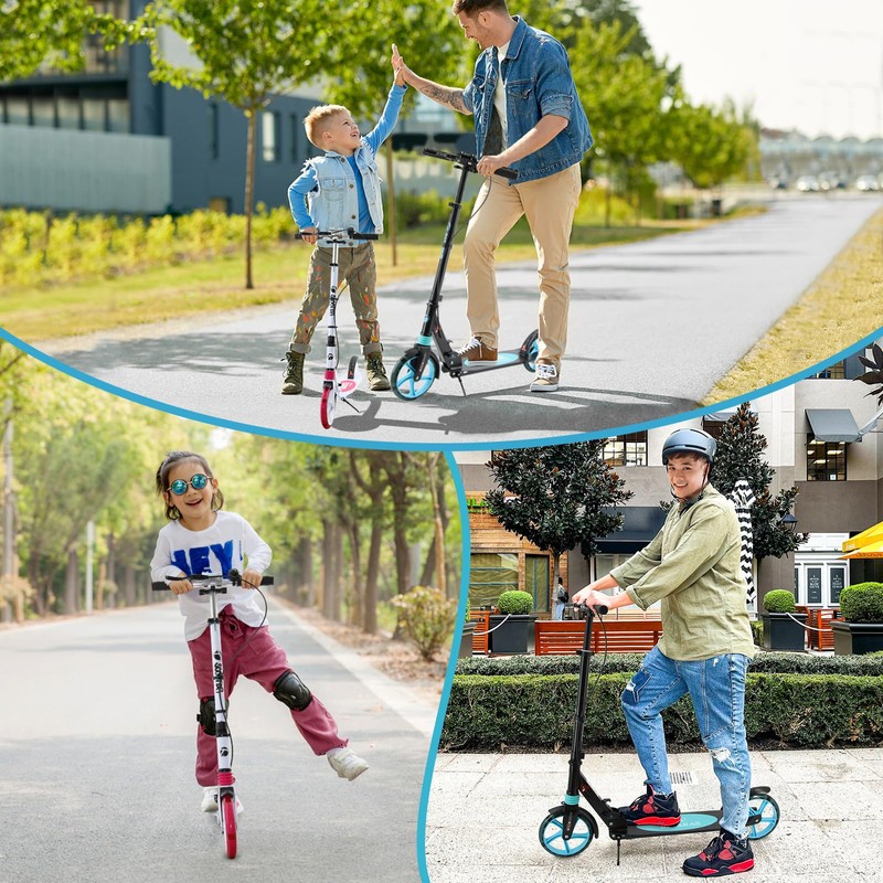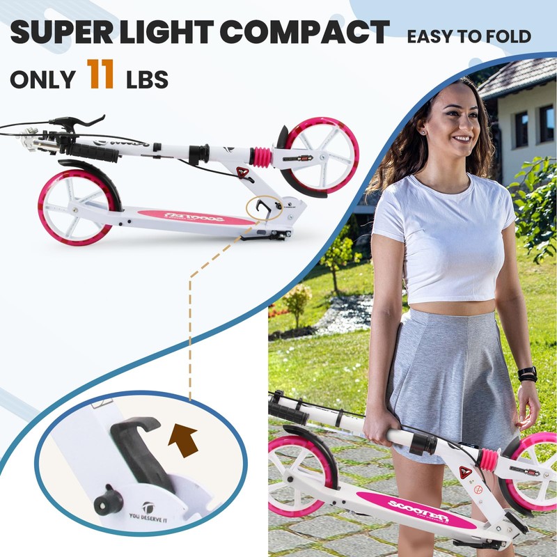 - Robust and Dependable: Constructed with an all-aluminum frame, our scooter is tailored for both adults and teenagers. Weighing a mere 11 pounds, it boasts an impressive structural integrity capable of supporting weights up to 220 pounds.