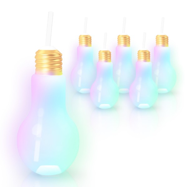 Windy City Novelties - 6 pack - LED Light Up White Light Bulb Cup with Straw