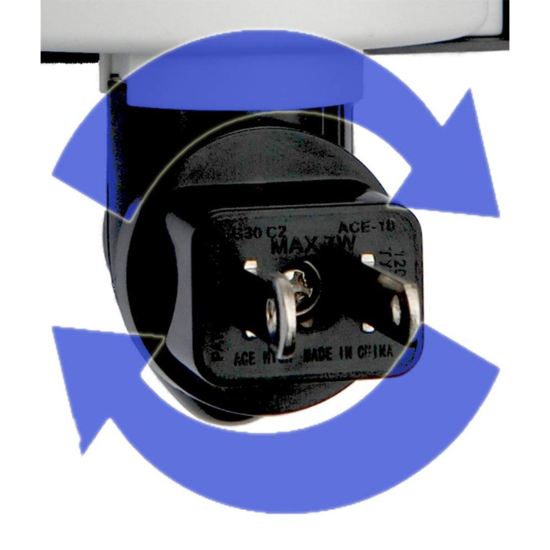 - Plug can be rotated to accommodate outlets in any direction.