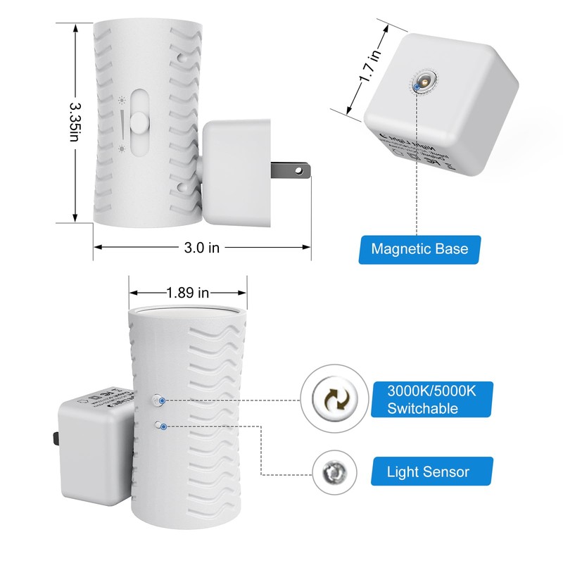 - 【One-Click Switch 3000K/5000K】Tap the button on the plug in night light to shift between 3000K and 5000K easily. 3000K soft white offers a gentle, relaxing mood for sleep. 5000K cool white is brighter, like natural light, with good visibility. Ideal for cozy nights or activities.