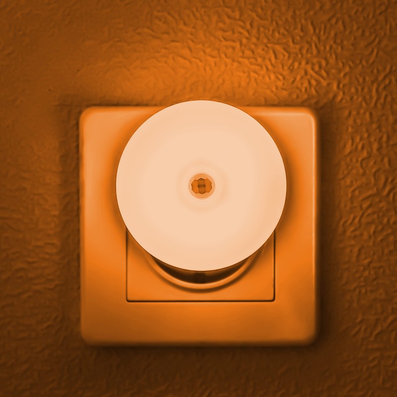 - Amber night light socket, auto on off by detecting ambient brightness and movement. Amber light is more sleep-friendly at night.
