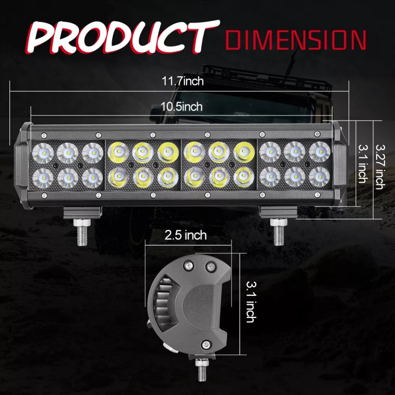 The DUAL ROW COMBO BEAM 6500K LED LIGHT BAR is widely applicable and can be used for a variety of purposes. It can be used as fog lights, driving lights, daytime running lights, headlights, off-road lights, and tractor lights, among others. Its bright and clear beam of light makes it ideal for enhancing visibility in low-light conditions, while its durable construction ensures it can withstand the rigors of off-road use.