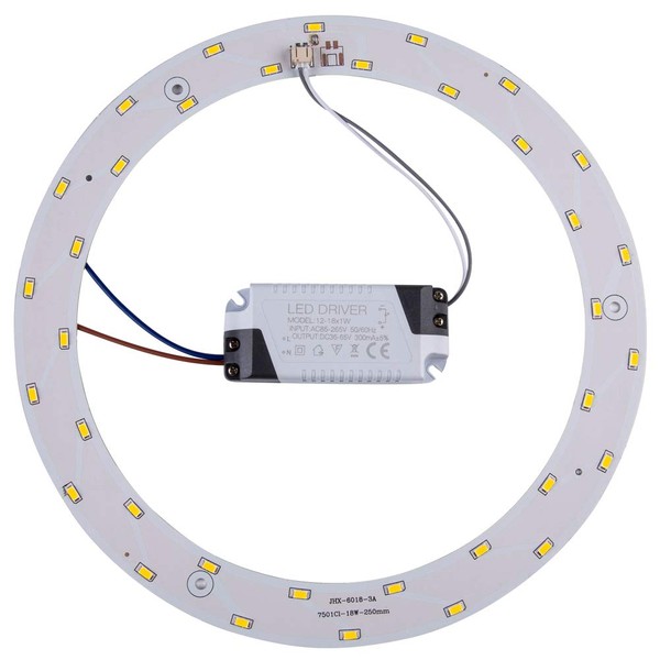 18w Out Diameter 25cm Inside Diameter 20cm 36 LEDs 100LM / Watt FOR 15-20 M2 ROOM TAIWAN 5730 SMD 100 Lumen Per watt Driver : Input 100-265v 50/60Hz for global use Light temperature Warm White 3000-3500k For home and office , the light stable and brightness , protect eyesight Energy saving than plain bulbs Long lifespan 5 years ( not same as the plain bulbs , you have to change them every one or two years , the plain bulb easy become darker ) Packing detail : 1 x 18w Led Light Panel 1x Led driver Some Magnets(light base should be steel ) 1 x instructions and easy to use Not including cover