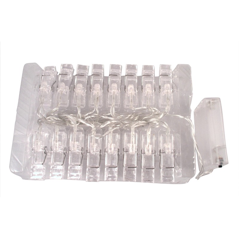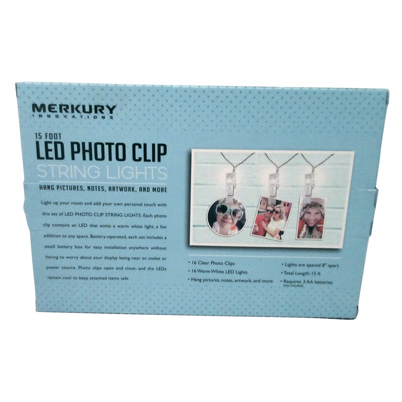 Light up your room and add your own personal touch with this set of LED Photo Clip lights. Each photo clip contains an LED that emits warm light. A fun addition to any space. Battery operated, each set includes a small battery box for easy installation anywhere without having to worry about your display being near a outlet or power source. Photo clips open and close and the LEDs remain cool to keep attachments safe. Great for organizing notes, crafts, to do's, goal list and more.