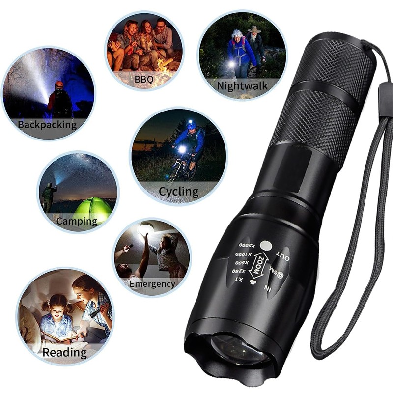 - 【Super Bright flashlight】With stable performance and the flashlight effortlessly illuminates an entire room making it the perfect super bright flashlight for everyday use.This powerful flashlight has 5 modes and a zoomable beam making it the ideal camping flashlight for outdoor use.