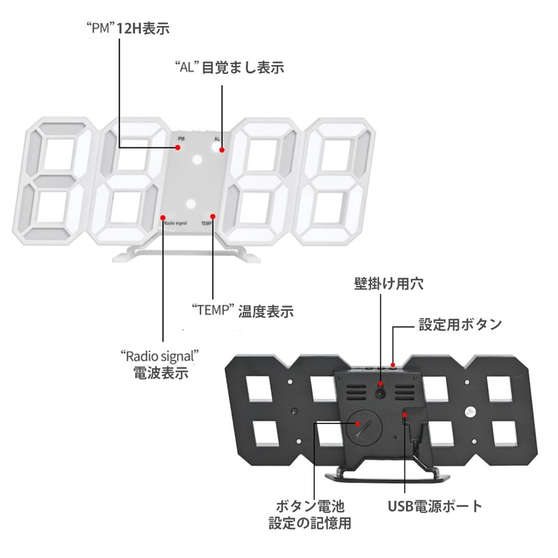 - (High Precision LED Radio Controlled Clock) This LED watch is equipped with a radio wave calibration function that will start receiving radio immediately after startup. It provides accurate time information and automatically corrects the display time, no setting is required. No need to worry about the accuracy of the time. Japanese instruction manual is also included, so you can easily set the detailed functions. Also, it is powered by the included USB cable, so you can use it immediately after delivery