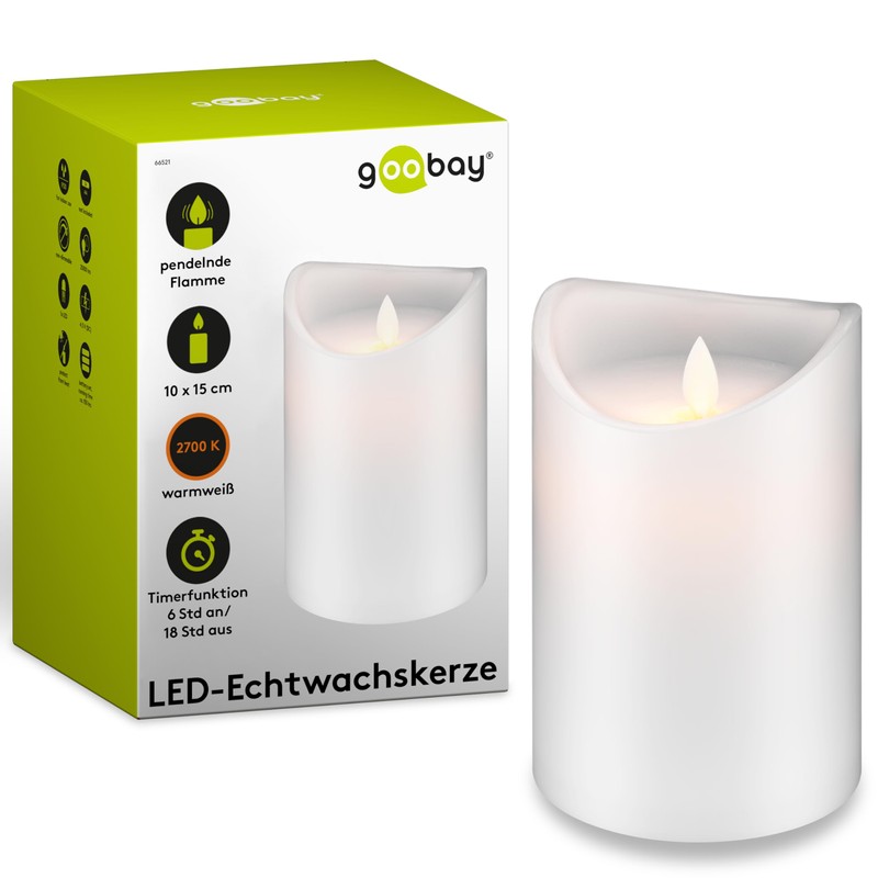 - LED real wax candle 10 cm x 15 cm is covered with a real wax coat; unique flame effect is created by the pendulum wick; hardly distinguishable from real Christmas candles