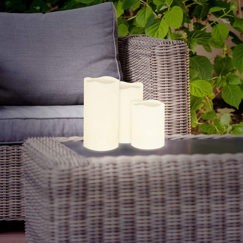 The LED candle set consists of 3 different pillar candles in cream white.