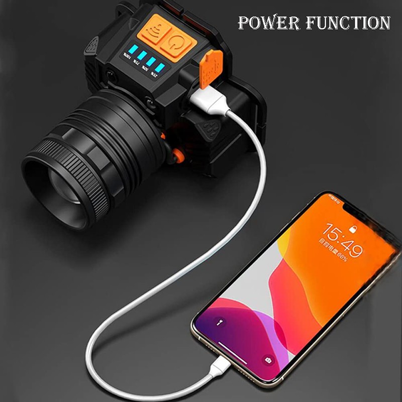 LED Rechargeable Head Lamp Motion Sensor Headlamp Super Bright High Lumen, Long Lasting Headlamps with USB Output Zoomable Waterproof Headlamp for Camping,Hunting
